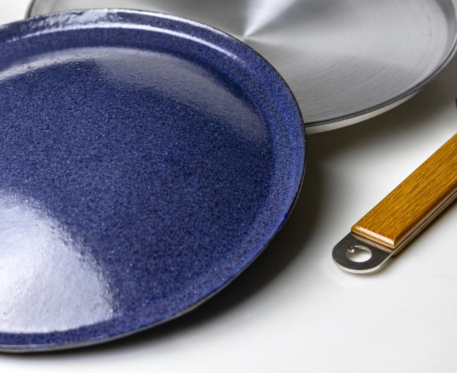 Unlike big mass production workshops, our artisan uses this mini "Saj Voyage oven" for the dome. We sprinkle the saj with ceramic powder, pop it inside the oven, and voila! The powder melts into a sleek, glass-like finish. Catch the enchanting show in our videos!