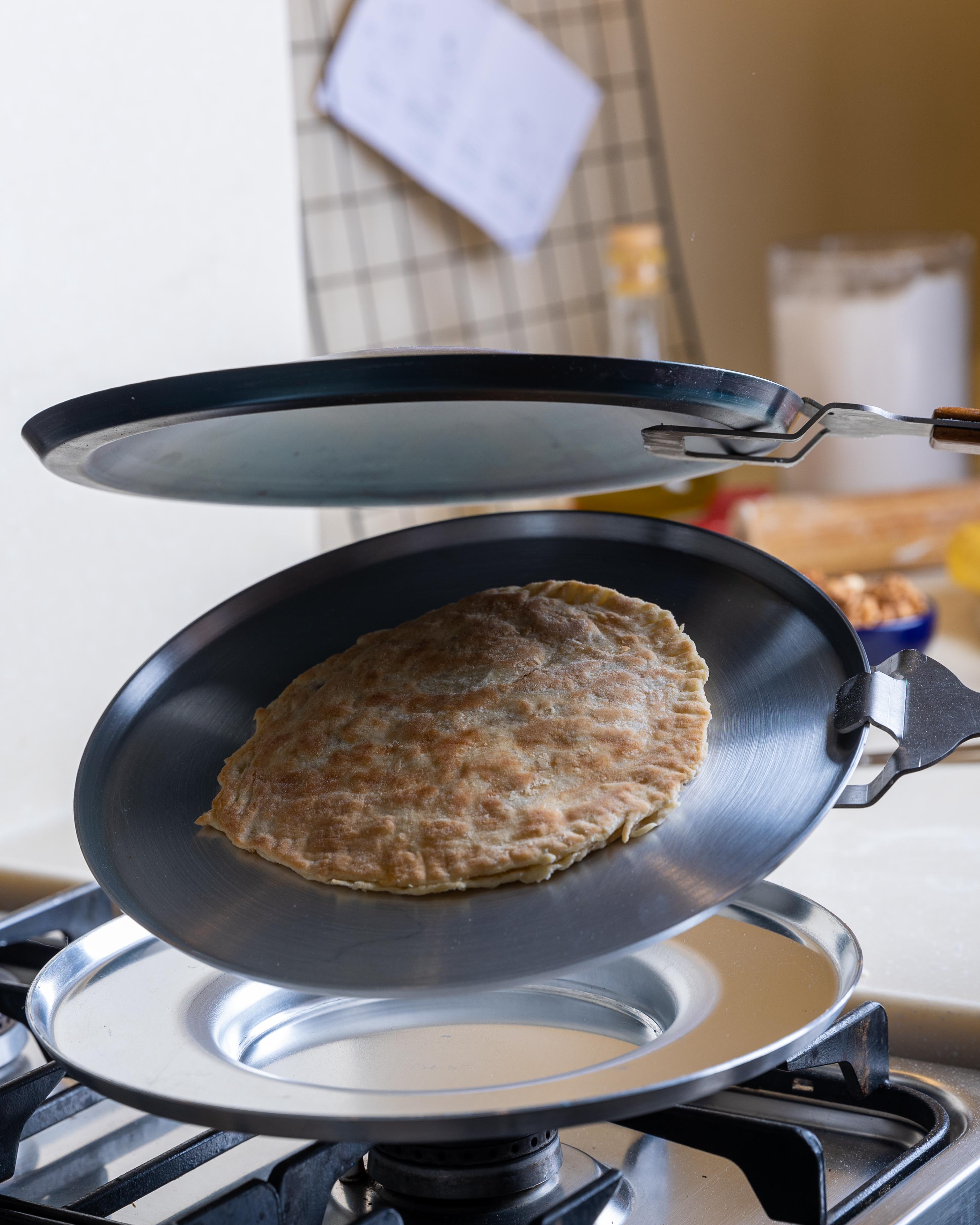 This innovative kit allows you to recreate the traditional Saj bread, a beloved Middle Eastern flatbread, right in your own home.Simply place it on your stove top, and watch as the Saj Voyage heats up from bottom to top, providing the ideal cooking conditions for your delightful and bubbly manoucheh dough. The middle part ensures a slow and evenly distributed heat, allowing you to bake mouajanet with perfectly circulated hot air. Experience the joy of traditional Saj bread with Saj Voyage.
