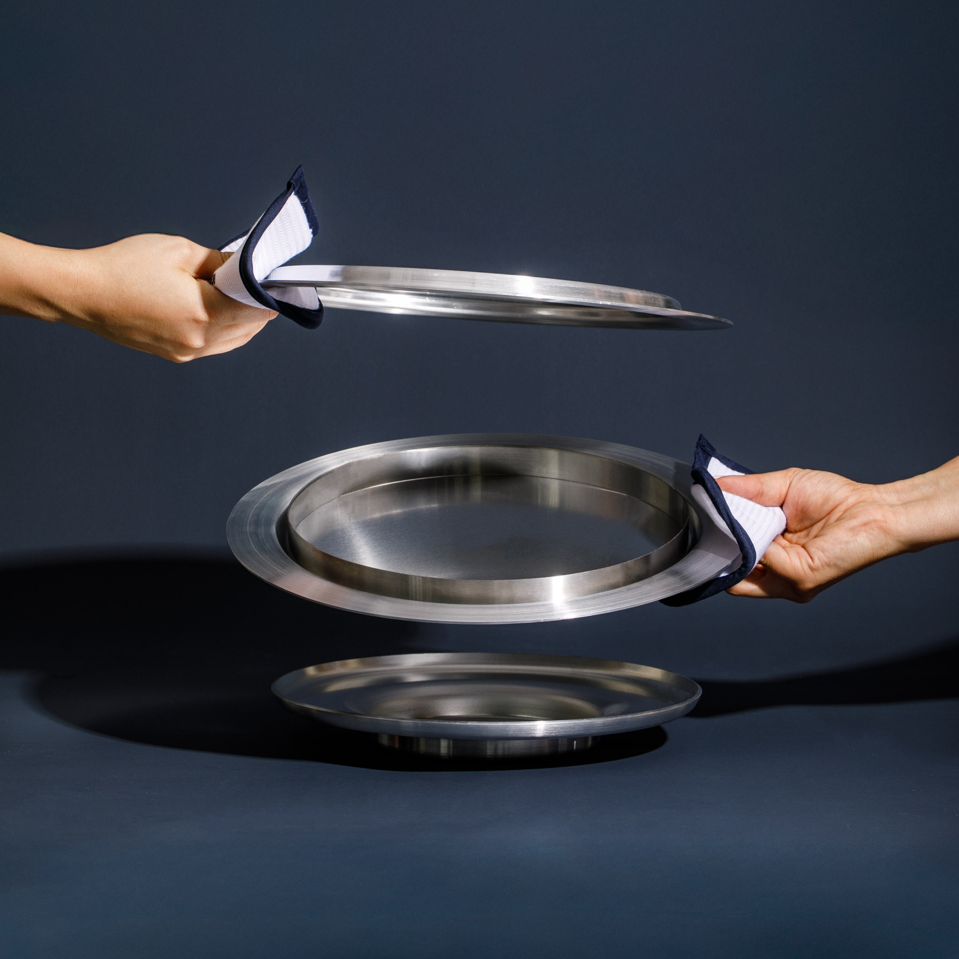 Unfortunately, O'four doesn't work on induction cookers.While the base does catch the heat, the hollow center prevents the transmission of heat to the dome, resulting in an altered cooking experience. O'four's kit maintain a hollow design between the base layer and the first tray. However, when used on an induction stove top, the heat fails to properly reach the dome, leading to different outcomes in cooking your recipe.