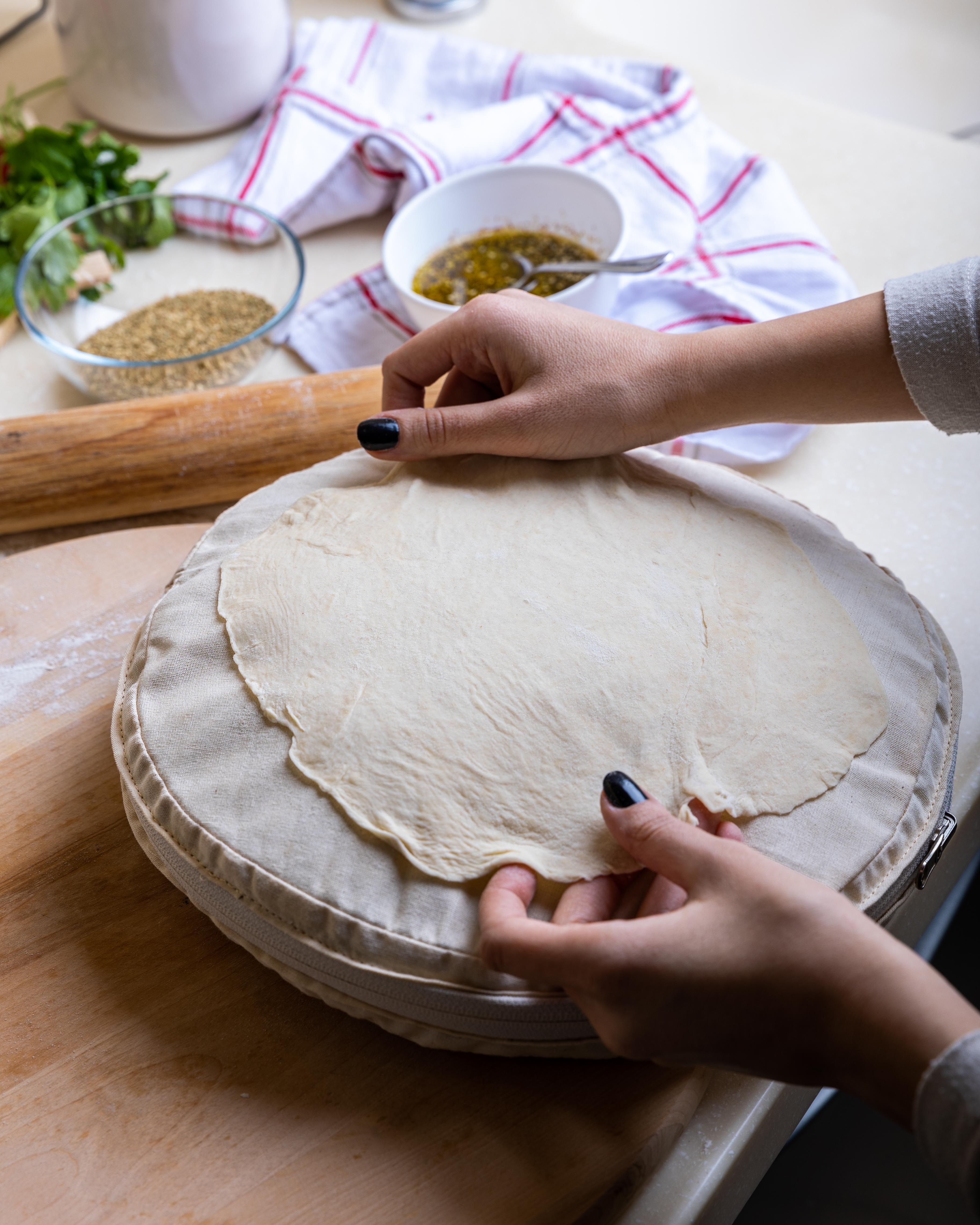 1. Reversible Travel Pouch, ingeniously reversible, transforms into a cushion, providing the perfect surface for extending your dough.