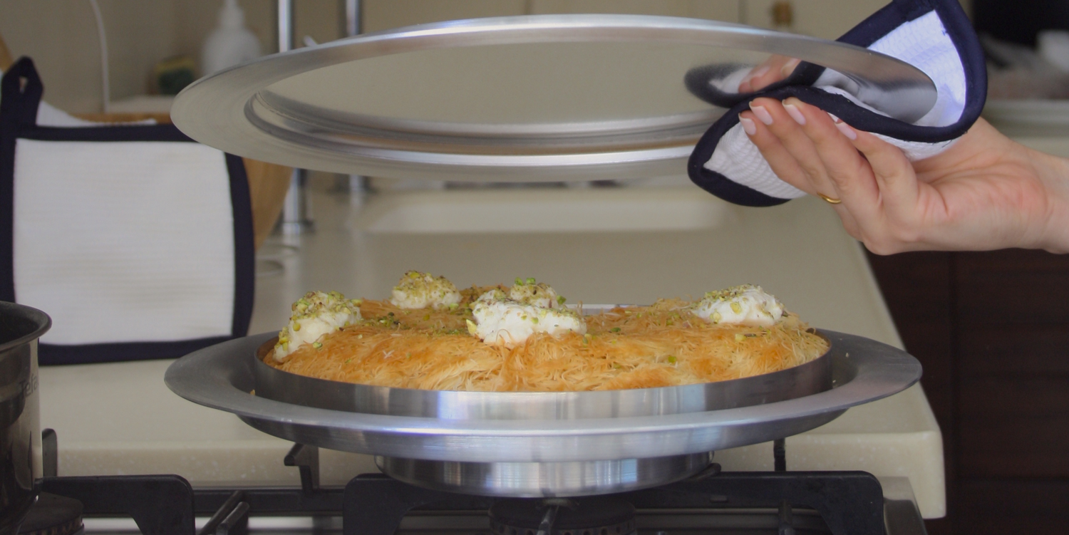 This innovative kit allows you to recreate the traditional Saj bread, a beloved Middle Eastern flatbread, right in your own home.Simply place it on your stove top, and watch as the Saj Voyage heats up from bottom to top, providing the ideal cooking conditions for your delightful and bubbly manoucheh dough. The middle part ensures a slow and evenly distributed heat, allowing you to bake mouajanet with perfectly circulated hot air. Experience the joy of traditional Saj bread with Saj Voyage.